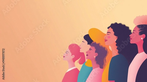 Vector flat horizontal banner for International Women's Day, women of different nationalities stand side by side together. generative ai