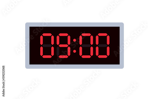 Vector flat illustration of a digital clock displaying 09.00 . Illustration of alarm with digital number design. Clock icon for hour, watch, alarm signs