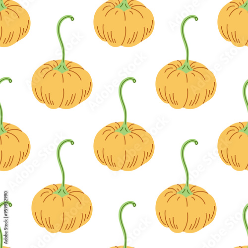 Vector flat style Halloween seamless pattern. Hand-drawn pumpkin. Element for labels, packaging and cards design.