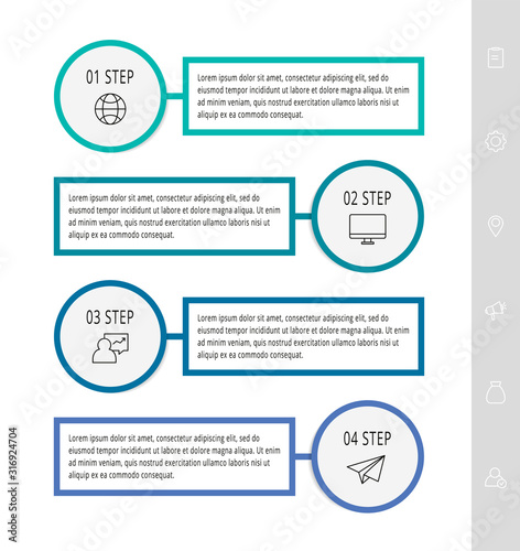 Vector flat template circle infographics. Business concept with 4 options and parts. Four steps for content, flowchart, timeline, levels, marketing, presentation, graph, slideshow