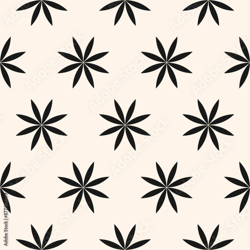 Vector floral minimalist seamless pattern. Easy black and white abstract geometric background with simple flower silhouettes. Minimal ornament texture. Monochrome repeated geo design for decor, print