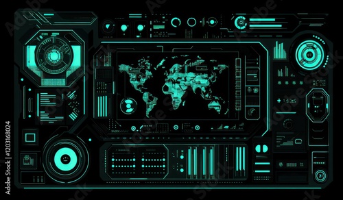 Vector futuristic high-tech infographic background with a world map and elements of a digital interface design.