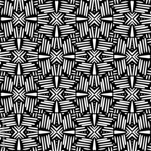 Vector geometric ornament in ethnic style. Seamless pattern with abstract shapes,Black and white color. Repeating pattern for decor, textile and fabric.