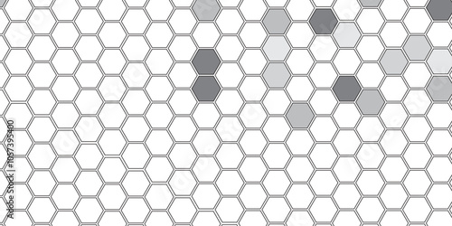 Vector geometric seamless texture symbol. Hexagon, bees hive cells pattern. Bee honey shapes. Abstract pattern with hexagonal white and gray technology line paper background. Stylish grid texture.