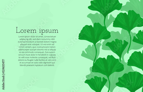 Vector ginkgo biloba leaves banner. Nature background with botanical leaves and space for text.
