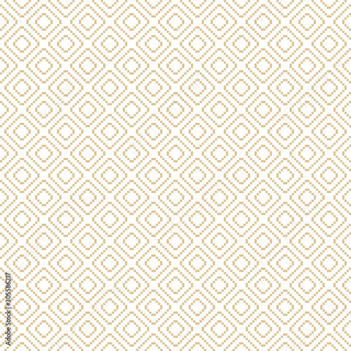 Vector golden geometric traditional seamless pattern. Fair isle ornament. Folk ethnic motif. Simple texture with tiny squares, rhombuses, grid, embroidery. Elegant gold and white repeat background