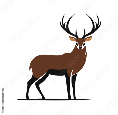 Vector graphic of a stylized stag in profile view with bold antlers, warm earthy tones, and flat lighting, isolated on white for a serene and elegant composition
