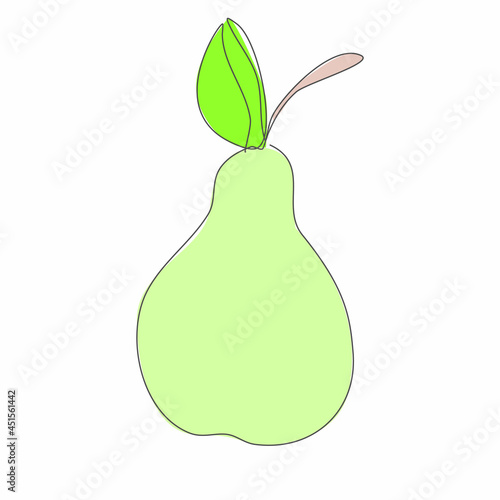 Vector Green Pear in Continuous Line Drawing. Sketchy Single Fruit. Outline Simple Artwork with Editable Stroke.
