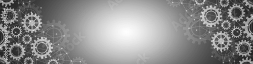 Vector halftone frame background. Design of technical mechanisms, gears. Texture of connection plexus network lines, particles, stars, dots. Poster of technology, medicine, social networks, websites.