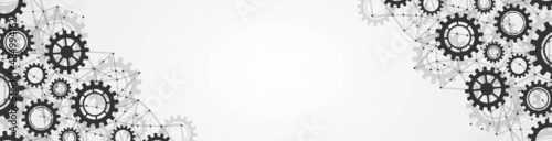 Vector halftone frame background. Design of technical mechanisms, gears. Texture of connection plexus network lines, particles, stars, dots. Poster of technology, medicine, social networks, websites.