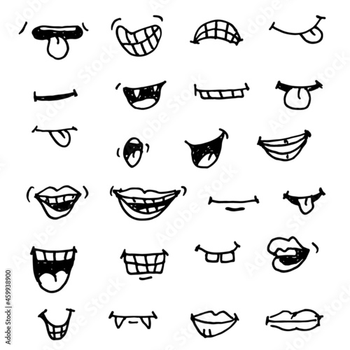 Vector hand drawn cartoon smiles collection