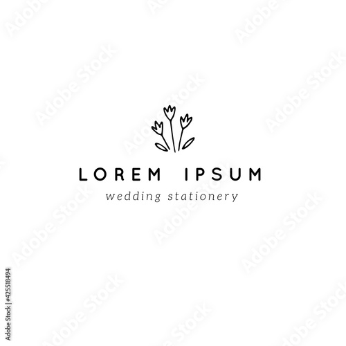 Vector hand drawn minimalistic logo template with small garden flowers.