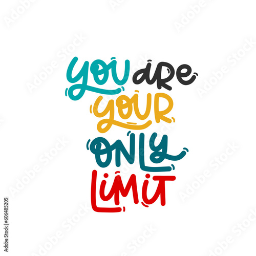 Vector handdrawn illustration. Lettering phrases You are your only limit. Idea for poster, postcard. Inspirational quote.