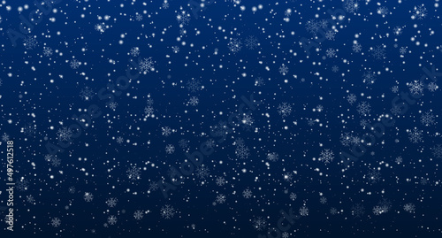 Vector heavy snowfall. Snowflakes in different shapes and forms. White snowflakes flying in the air. Snow flakes. Snow background