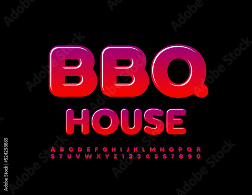 Vector hot banner BBQ House. Bright gradient Font. Creative set of Alphabet Letters and Numbers
