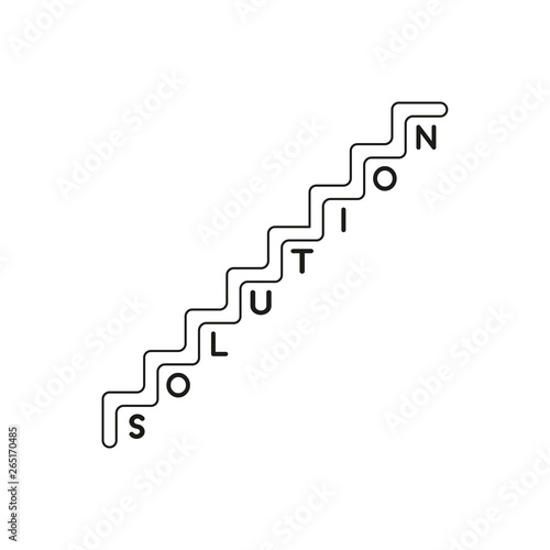 Vector icon concept of stairs with solution word with one letter per step. Black outline.
