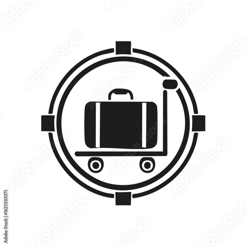 Vector icon of a suitcase on an airport luggage cart for travel and baggage handling.