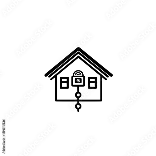 Vector icon of house with padlock symbol representing home security privacy or property safety