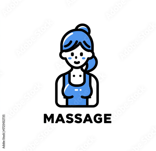 Vector Icon of Massage with Bold Text in Blue and Black Line Art
