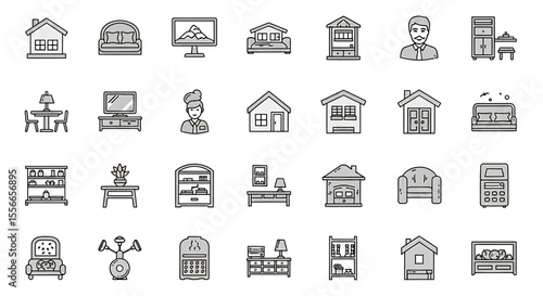 Vector Icons Set of Collection of Monochrome Home Furnishings and Structures. Vector Illustrations. EPS Editable