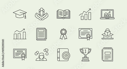 Vector Icons Set of Education and Academic Achievement Thin Line Icon Set. EPS Editable