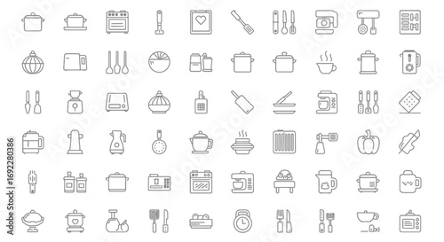 Vector Icons Set of Extensive set of kitchen utensils and cooking equipment line icons for culinary design. EPS Editable