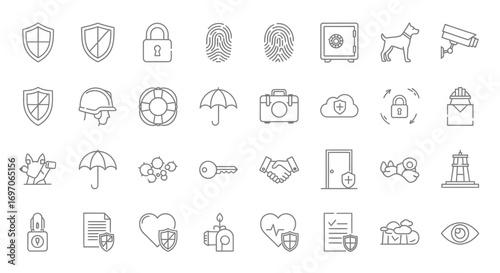 Vector Icons Set of Hand drawn security and protection doodle icon set on white background. EPS Editable
