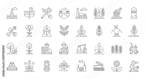 Vector Icons Set of Sustainable Agriculture and Ecology Thin Line Icon Set for Farming and Environment. EPS Editable