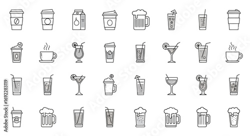 Vector Icons Set of Vector collection of drink and beverage thin line art icons. EPS Editable