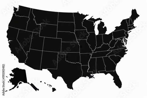 Vector Illustration: A White - Backgrounded USA Map with Isolated States