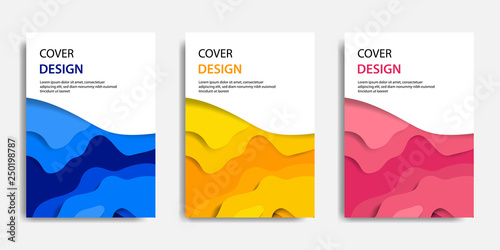 Vector illustration, document mock up template, easy color adjustment. Paper cut topographic style in colorful wave layering. Suitable for book cover, annual report, flyer, poster, brochure.