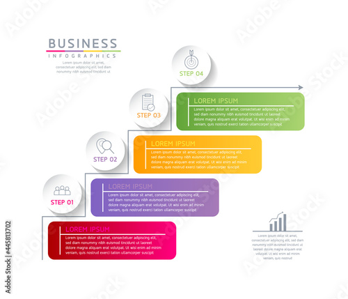 Vector illustration infographics design template, business information, presentation chart, with 4 options or steps.