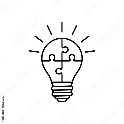 Vector illustration of a light bulb with puzzle pieces inside representing a creative idea and solution