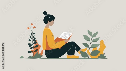 Vector illustration of a person reading a book with curiosity, featuring simple lines and a focus on the joy of reading.