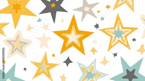 Vector illustration of a seamless pattern with yellow, stars on a white background