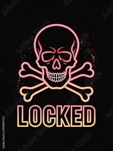 Vector illustration of a skull and crossbones with the word locked in a trendy neon style against a black background