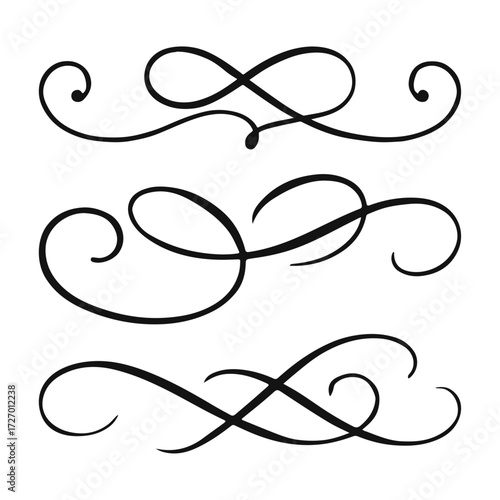 Vector illustration of an abstract floral swirl element set for vintage wedding ornament design