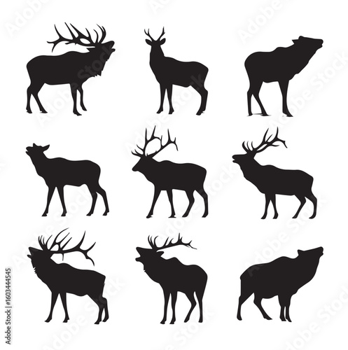 vector illustration of bugling elk silhouette set, Black & White silhouette set