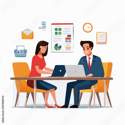 Vector illustration of business teamwork concept with diverse people working together, flat design corporate collaboration, office team communication, partnership and group success in modern workplace