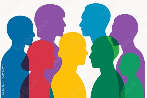 Vector illustration of colorful diverse people silhouettes, a business team working together