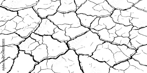 Vector Illustration of Cracked Ground Texture with Transparent Background – A Distressed Grunge Effect Featuring Natural Earth Line Patterns