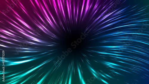 Vector illustration of faster than light (FTL) interstellar or intergalactic travel. Speed of light and hyperspace.