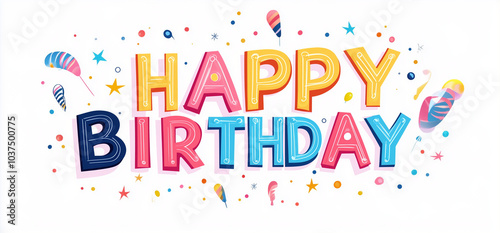 Vector illustration of "HAPPY BIRTHDAY" text with marquee-style letters isolated on a white background, in a 3D illustration style