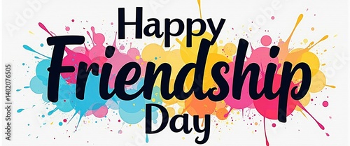 Vector illustration of Happy Friendship Day text banner with colorful splash isolated on white background.