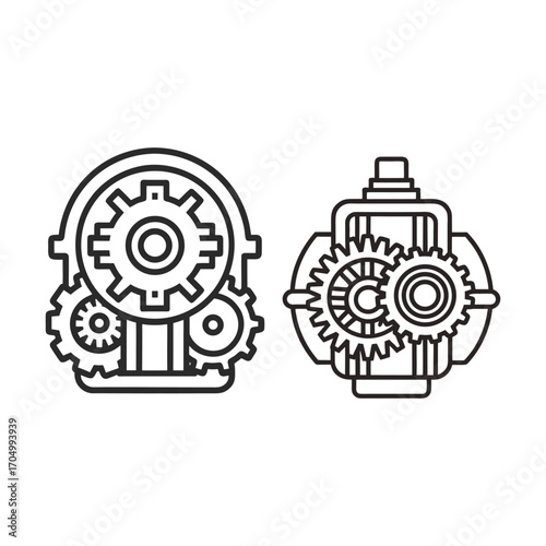 Vector Illustration of Interlocking Gear Mechanisms Technical Diagram of Transmission and Mechanical Engineering Concepts