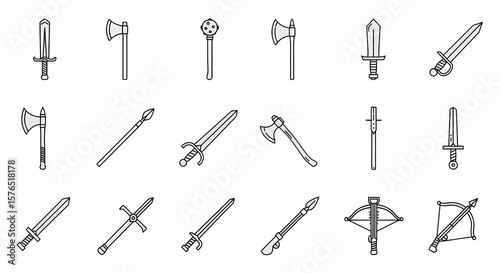 Vector Illustration of Medieval Weapons Swords Axes Spears and Bows.
