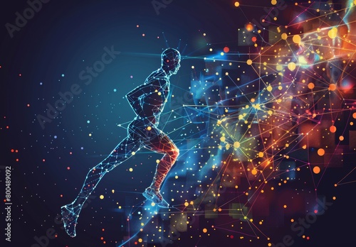 Vector illustration of Running Man transforming into network connection.