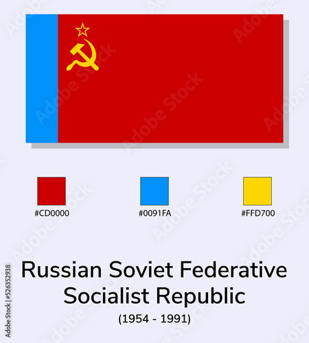 Vector Illustration of Russian Soviet Federative Socialist Republic (1954 - 1991) flag isolated on light blue background. Russian Soviet Federative Socialist Republic flag with Color Codes.