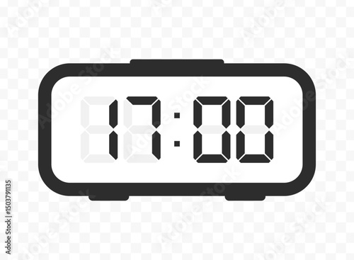 Vector illustration of seventeen o'clock digital clock icon sign and symbol. colored icon for website design .Simple design on transparent background.