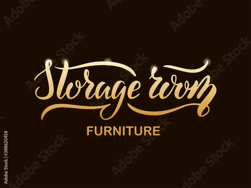 Vector illustration of storage room furniture lettering for banner, leaflet, poster, logo, advertisement, web design. Handwritten text for template, signage, billboard, print, flyer of furniture sho